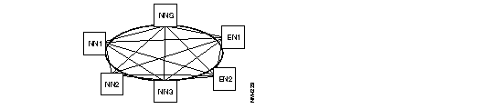 For example, in Figure 6-9, NN2, NN3, NN4, and NN5 are in a fully meshed network. Every network node establishes CP-CP sessions with its adjacent network nodes. This means that NN2 establishes CP-CP sessions with NN3, NN4, and NN5. NN3 establishes CP-CP sessions with NN2, NN4, NN5, and so forth.
