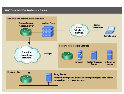 AT&T Canada offers the Public Dial Access (PDA) remote access service, a managed IP service, to commercial customers and internal AT&T Canada network users alike. Remote access services allow enterprise customers to outsource the installation and management of remote access equipment and network security. Modem pools and low-end access servers in the AT&T Canada network are being replaced with newer technologies, including the Cisco AS5200 universal access servers. "They allow us to offer many more features, including 56-kbps modem technology and Integrated Services Digital Network (ISDN). And their greater port densities mean our cost per port will drop by more than 50 percent," says Stephens.