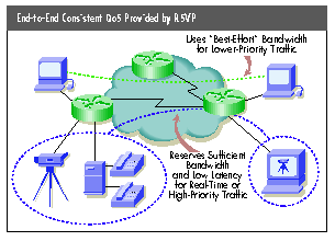 RSVP enables individual hosts or applications -- multimedia and others -- to dynamically reserve the network resources they require to ensure timely and uncorrupted transmission. In addition, Cisco IOS software empowers network administrators to prioritize the amount of bandwidth available to these RSVP-enabled applications and thereby ensure proper balance between different applications.