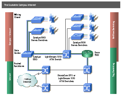 At home in the wiring closet, switched backbone, or data center, the Catalyst 5000 family scales the intranet with Cisco IOS network services. "Cisco is going well beyond platform and hardware products to deliver users a scalable network architecture," says David Passmore, Senior Analyst with Decisys Corporation (Sterling, Virginia). "They're not just selling boxes, they're addressing the huge challenge of integrated network services for corporate intranets."