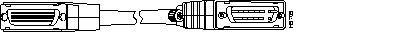 The following illustration shows serial cable CAB-HSI1= (part number 72-0710-01), which is used in the Cisco 7500 series, Cisco 7000 series, and Cisco 4000 series (NP-1HSSI). This cable has a male DB-50 (SCSI) connector on the Cisco end and a male DB-50 (SCSI) connector on the network end.