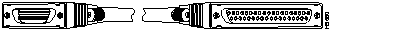 The following illustration shows serial cable CAB-HNUL= (part number 72-0727-01), which is used in the Cisco 7500 series, Cisco 7000 series, and Cisco 4000 series (NP-1HSSI) systems. This cable has a male DB-50 (SCSI) connector on the Cisco end and a male DB-50 (SCSI) connector on the network end.