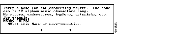 In this document, Headquarters is the example connecting router name. Press Enter when you have entered the connecting router name. If you enter an invalid name, an error message will appear and you must enter the connecting router name again.
