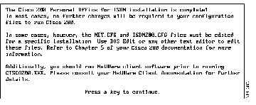 Step 5 Press any key to continue. INSTALL.EXE will take you to the directory in which you installed the Cisco 200 software.