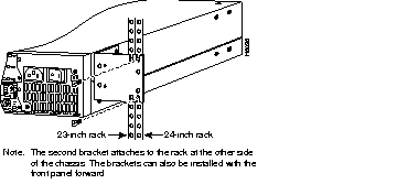 This section describes how to rack-mount the Cisco RPS. The illustrations in this section show how to attach the brackets for use in 23- or 24-inch equipment racks, although the procedure is the same regardless of the size of the brackets. If you have a Cisco 3600 series router, go back to the section "Rack-Mounting and Wall-Mounting Cisco 3600 Series Routers," on page 5.