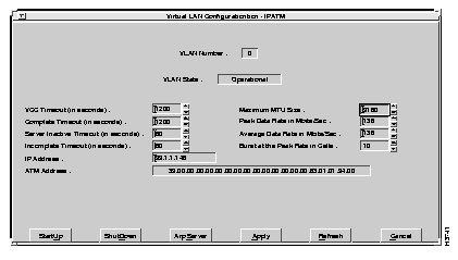 Configuration parameters for VLANs, such as information related to the external server services for IP over ATM protocol, can be set and modified using the Configure option.