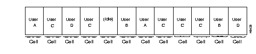 In other packet-handling technologies, such as High-Level Data Link Control (HDLC), any user can gain access to the communications channel, but a user who has a long message to send can prevent other users from gaining access to the channel until the entire message has been passed. However, with ATM, every message is divided into small, fixed-length cells. Thus, no single user can monopolize access to the communications channel while other users have messages to send (see Figure 1-2).