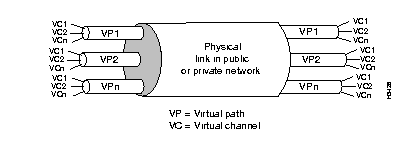 VCCs are sometimes transported within virtual paths (VPs). A VP is identified by its virtual path identifier (VPI). VPs provide a convenient way of bundling traffic directed to the same destination or traffic requiring the same Quality of Service (QoS) in the network (see Figure 1-7).