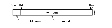 Every ATM cell is 53 bytes long. The first 5 bytes contain header information, and the remaining 48 bytes contain the payload (see Figure 1-8).