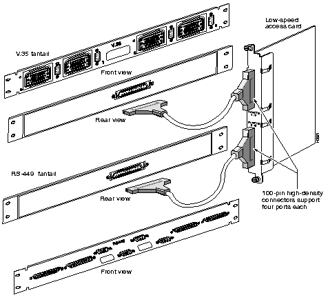 If your system has no low-speed or cell line card/T3 modules, skip to the section "Attaching Data Cables."