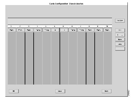 Step 2 Click on the push button below the number of the slot that you want to configure. This button is labeled Empty, or, if it has been previously configured, it is labeled with an abbreviation for the card type. After you click on a push button, card configuration attributes are displayed across the top of the dialog box (see Figure 3-7).