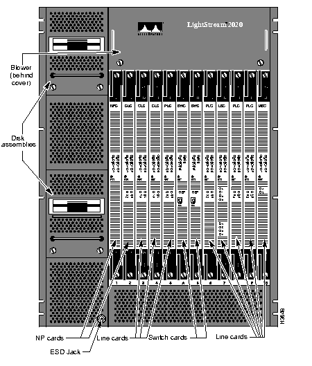The disk assembly is a single FRU consisting of a hard disk drive, a floppy disk drive and an associated power supply. A LightStream 2020 switch can have up to two disk assemblies. Each disk assembly is associated with a network processor card, and is connected to the network processor card by a ribbon cable attached to a male connector at the rear of the disk assembly slot.