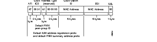 The switch's ATM address uses a hierarchical addressing model similar to the Open System Interconnect (OSI) network service access point (NSAP) addresses. PNNI uses this hierarchy to construct ATM peer groups. ILMI uses the first 13-bytes of this address as the switch prefix that it registers with end systems.