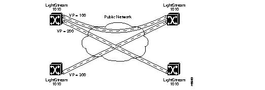 Figure 1-8 shows an example of a network configuration in which private switches form a private network interconnected over permanent VPs. These VPs provide logical trunks tunnelling across a public network.