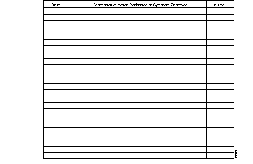 The Site Log (see Figure B-14) is used for subsequent maintenance of the switch. A detailed description of actions performed and symptoms observed should be completed by the person performing the maintenance and kept as part of the permanent site record.