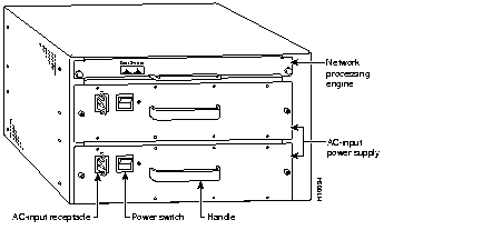 The rear of the Cisco uBR7246 universal broadband router provides access to the network processing engine and up to two power supplies (see Figure 3).