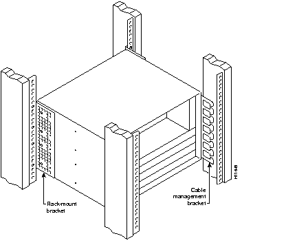 This section explains how to install the rack-mount brackets and cable-management bracket on a Cisco uBR7246 universal broadband router. Before installing the chassis in the rack, you must install a rack-mount bracket on each side of the front, middle, or rear of the chassis. If you are rack-mounting the chassis from the front, you cannot use the cable-management bracket.