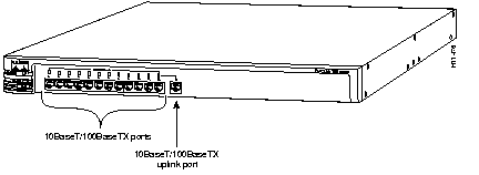 All ports support the 10BaseT and 100BaseT IEEE 802.3 and IEEE 802.3u specifications and connect to any 10BaseT with Category 3 or 4 unshielded twisted-pair (UTP) cable or to any 100BaseTX device with Category 5 UTP cable.