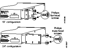 The bracket orientation and the screws you use depend on whether you are attaching the brackets for 19-inch or 24-inch rack-mounting: