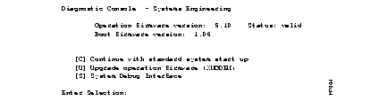 [C] Continue with standard system startup. Select this option after you have resolved the firmware problems with options [U] or [S]. It brings up the debugged or upgraded firmware.