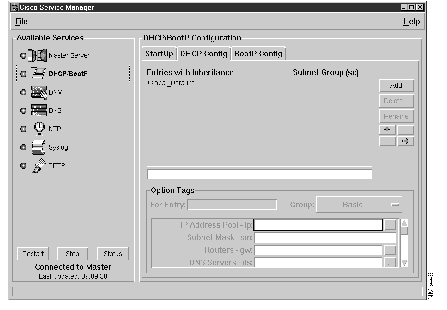 | Custom option tags | BootP and DHCP support a set of generic tags that let administrators provide custom configuration data for which clients must be configured to interpret. In traditional BootP and DHCP configuration files, custom option tags are in the form Tn=value, where n is an integer. In the Cisco DHCP/BootP server, you can define custom tags with the CSM (see the section, "Adding Custom Parameters"). |