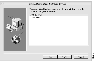 If you clicked Next, a dialog listing NetWare servers appears. This list is made of NetWare servers that meet these criteria: your PC can access it, a network drive is mapped to the SYS volume, and a SYSTEM directory exists in the SYS volume.