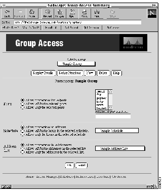 The Group Access window appears. Sample Group appears in the Select a group pull-down menu.