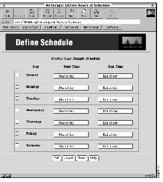Step 5 Click Define Hours to define the times in a schedule.