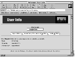 The User Info window appears. The Sample User appears in the Select a user pull-down menu.