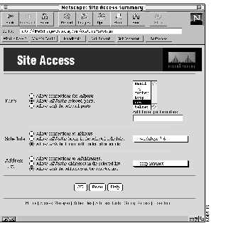 Allow only the addresses in the selected list. This option allows access to only the locations in the address list selected in the pull-down menu. For example, you could create an intranet of corporate addresses only.