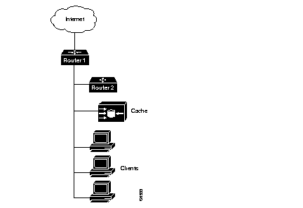 Figure 1-9 shows an example of adding a home router to an existing network. In this example, you must enable the Web Cache Control Protocol on router 2, and redirect web traffic on the interface connecting to router 1 from router 2. Then, make router 2 the default gateway for all of the client machines on the network, and router 1 the default gateway for router 2.