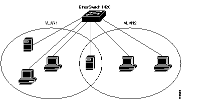 The EtherSwitch 1420 and 1220 support up to four intraswitch VLANs. This capability allows ports on the switch to be grouped into separate logical networks. Unicast, broadcast, and multicast packets are forwarded (and flooded) only to those stations within a VLAN, creating a virtual firewall between VLANs. A port can be assigned to a VLAN using the switch's management console or in-band using any SNMP-compatible management station.