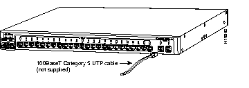 All 10BaseT ports (ports 1x through 12x or ports 1x through 24x) on the switch can connect to any 10BaseT-compatible device. You must provide the Category 3, 4, or 5 UTP cable(s) required for connecting any of these ports to other 10BaseT devices. All UTP connections between the switch and the attached device(s) must be within 100 meters.