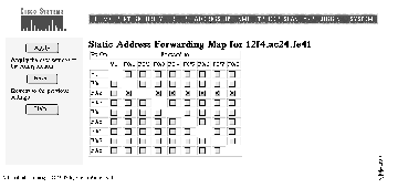 Static addresses are manually entered into the Static Address Table. They are not aged (dropped) from the table when not in use, and they are not lost when the switch resets. After you have entered a static address in the table, use the Static Address Forwarding Map (see Figure 4-8) to define the ports from which the address can receive packets and the ports to which the address can forward packets.