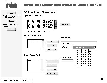 Use this page to manage the address tables that the switch uses to forward traffic between ports. Addresses are listed in the address tables with the MAC address, interface, and the port number. The following example associates MAC address 0000.2934.a0b3 with Fast Ethernet interface 0 (the switch) and port number 3.