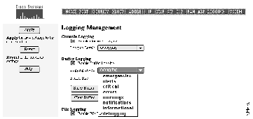 The switch generates traps and other messages when the configuration changes and when certain network or switch events occur. You can set the switch to write this information to the management console or to a buffer, file, or UNIX Syslog facility. Use this page (see Figure 4-16) to define the logging type and level of detail to log. Specify the amount of detail to log by selecting the appropriate severity level (see Figure 4-17).