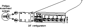 The bracket orientation and the screws you use depend on whether you are attaching the brackets for a 19-inch or 24-inch rack. Use two of the supplied screws to attach each bracket, according to the following guidelines: