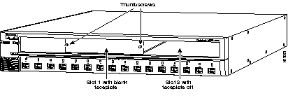 The switch expansion slots are number 1 (left) and 2 (right). You can install either of the modules into either slot. Blank faceplates on the Catalyst 2916M XL cover the slots, as shown in Figure 2-1.