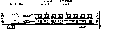 The following table describes the light emitting diodes (LED) on the front panel of the Catalyst 1800 switch.