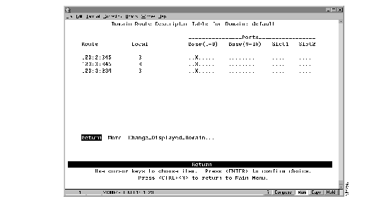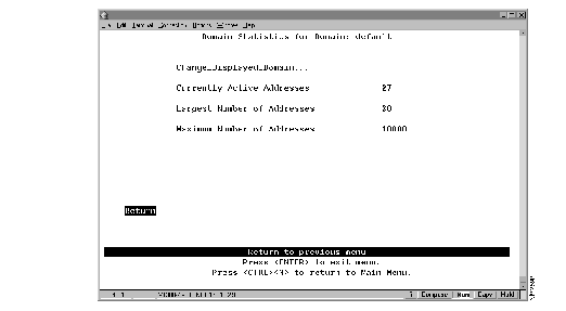 To view the entries in the address table for each domain, select Domain Address Table on the Status/Statistics Menu. The Domain Address Table panel (Figure 7-6) is displayed. The entries are listed in the order in which they were encountered.