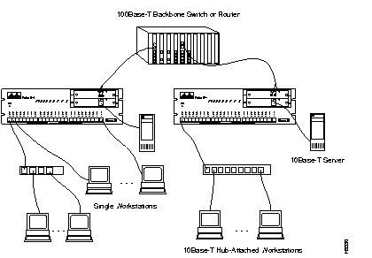 Catalyst 2800s can connect to a 100Base-T backbone switch or router. With support for CollisionFree full-duplex operation, each 100Base-T link supports up to 200 Mbps of bandwidth and fiber cabling distances of up to 2 km.