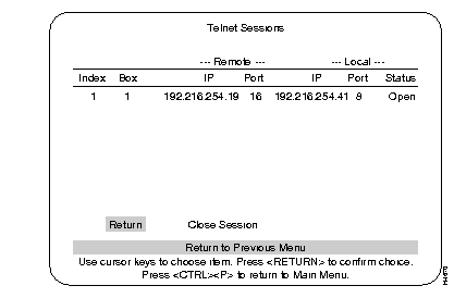 If this selection is highlighted and RETURN is pressed any Telnet sessions will be terminated.