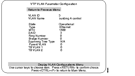 Use the VTP VLAN Configuration menu to configure the following parameters for a VLAN in the management domain: