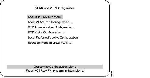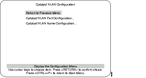 This section describes VLAN, the next selection on the Configuration menu. The optional VLAN and VTP feature is available on the Enhanced version of the Catalyst 3000 series (contact your Cisco sales representative for information). Using the VLAN feature, you can partition a single Catalyst 3200 into multiple VLANs, each containing its own set of ports. Packets are forwarded only between ports belonging to the same VLAN.