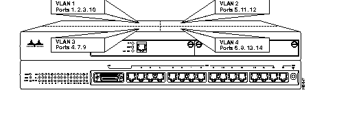 The benefit of VLAN partitioning is to restrict access from one segment to another, either for security purposes or to reduce intersegment traffic. Figure 7-1 illustrates a Catalyst with four VLANs.