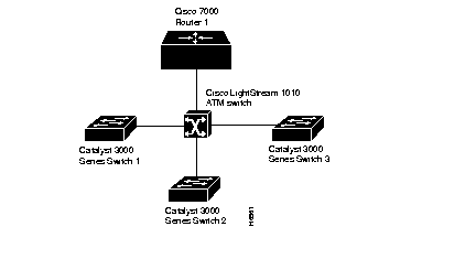 In typical LANE cases, one or more Catalyst 3200 series switches or Cisco 7000 routers are attached to a Cisco LightStream 100 ATM switch. The LightStream 100 switch provides connectivity to the broader ATM network switch cloud. The routers are configured to support one or more emulated LANs. One of the routers is configured to perform the LANE configuration server functions. A router is configured to perform the server function and the broadcast-and-unknown server function for each emulated LAN. (One router can perform the server and the broadcast-and-unknown server functions for several emulated LANs.) Routers and Catalyst 3200 series switches can act as a LANE client for one or more emulated LANs.