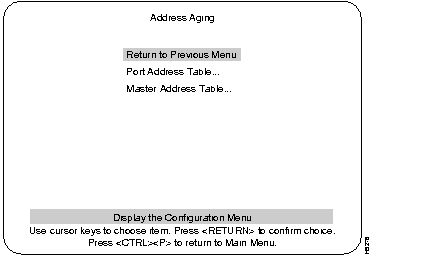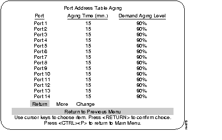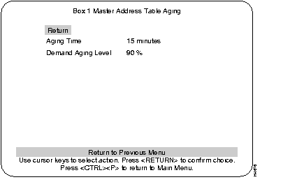 Select this menu from the Address Aging menu. See the Address Aging section in this chapter for an explanation of the terms Aging Time and Demand Aging Levels.
