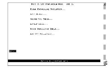 To view statistical information about the LEC, select LEC Statistics on the Port x ATM Statistics panel. The Port x LEC Statistics Menu panel (Figure 23) is displayed.