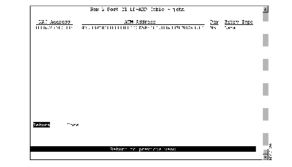 To view the LE-ARP table, select LE-ARP Table on the Port x LEC Statistics Menu panel. The Port x LE-ARP Table panel (Figure 27) is displayed.