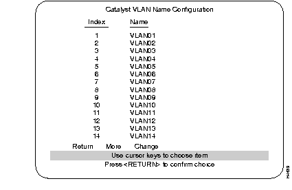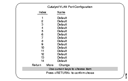 When you select "Change" and press the RETURN key, you are prompted to enter the port number, and select the name of the VLAN.